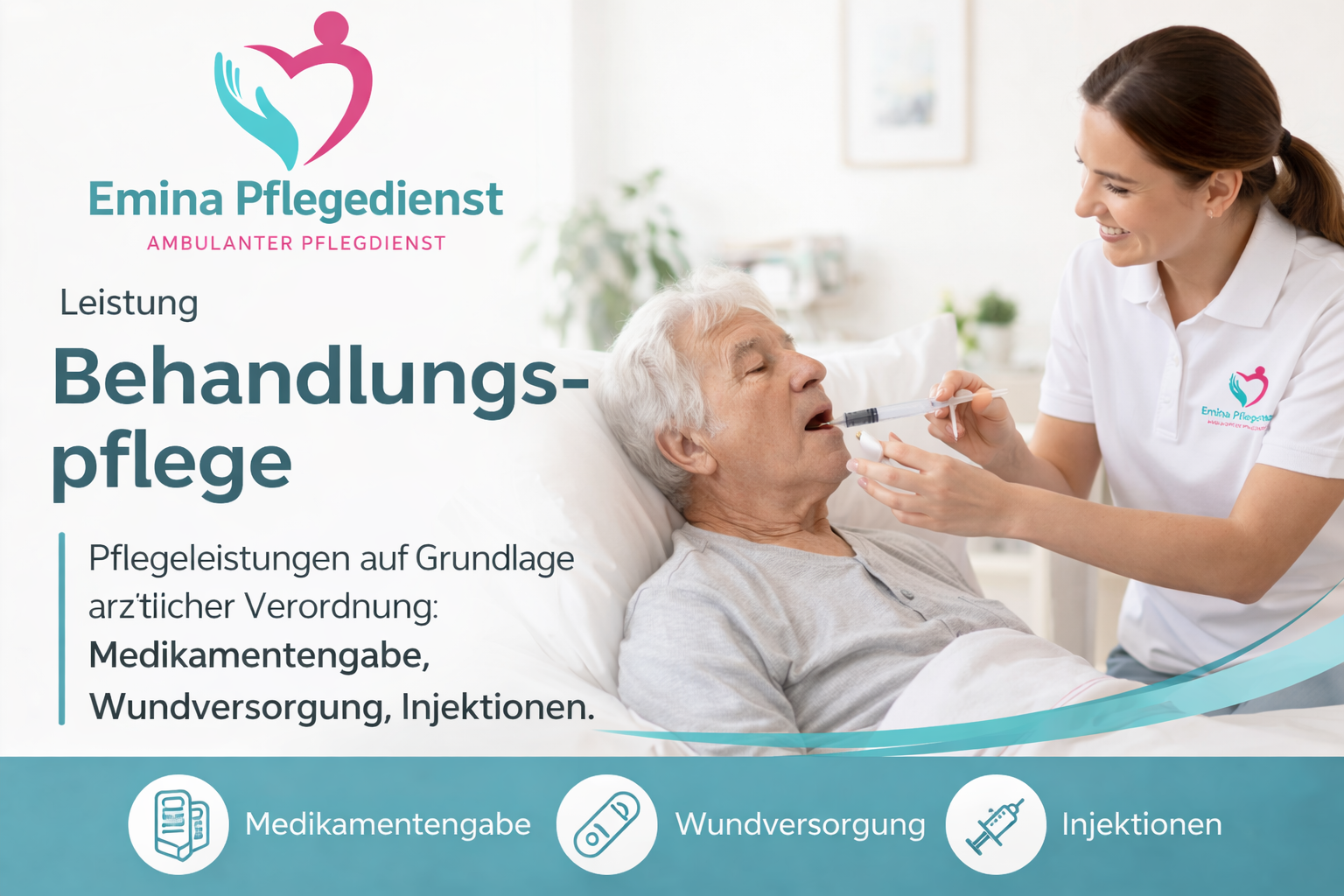 Pflegeleistungen auf Grundlage ärztlicher Verordnung: Medikamentengabe, Wundversorgung, Injektionen.